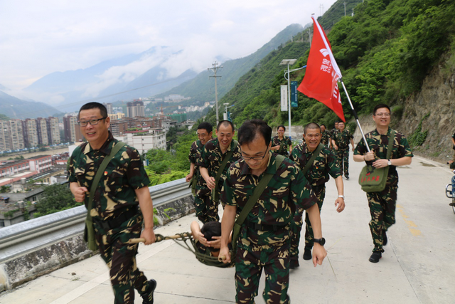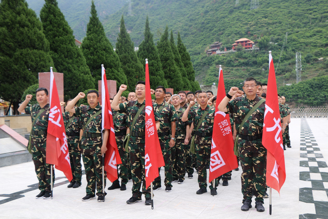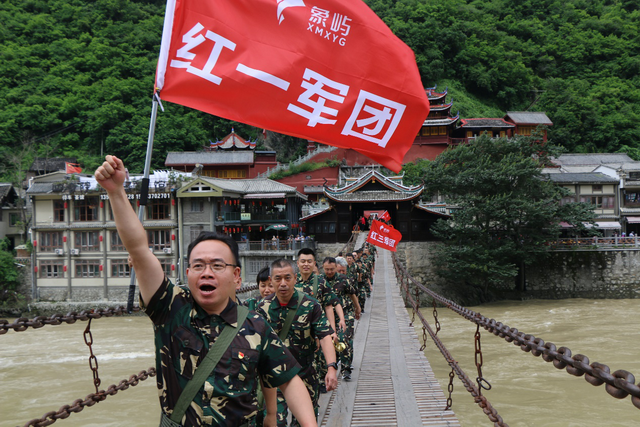 7月31日清晨,大渡河畔的红军飞夺泸定桥纪念馆前旌旗飘扬,尊龙人整齐列队,英姿飒爽,士气高昂。